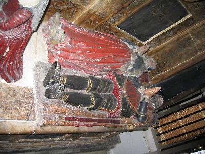 John de Oteswich and his wife. The effigies are thought to be late 14th to early 15th century. The effigies were removed in 1874 during the demolition of the church of St Martin Outwich which stood in Threadneedle street. John was the son of William de Oteswyche a surgeon in 1300 who had died by 1331 and owned tenements in St Martin and St Benet Fink. In 1387 the Advowson of St Martin was purchased by John Churchman for William and John de Oteswich and by license of King Henry IV in 1405 gave the advowson to the master and wardens of the taylors and linen-armourers and their successors to the help the poor of that company.