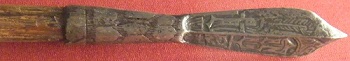A 'Storm Shield' with two metal spikes allowing it to be planted into the ground, from National Museum, Copenhagen Denmark. |