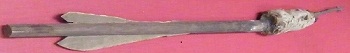 Bayerisch Museum, Munich, Germany. War bolts often had sockets and short heavy tips of rhomboidal cross section in the 14th century. Long dart like tips with tangs were also used. The heaviest crossbow bolts smay not have had flights, lighter ones could have two or three straight, ocassional spiral flights of bird feathers, parchment, wood slices, or thin sheet copper, W. Boeheim. Spiral flights were made in Frankfurt am Main in 1349, B. Rathgen. Crossbow bolts from Prague 1430-60, Vienna Armoury, Austria Commanders crossbow bolt from Prague 1430-60, Vienna Armoury, Austria.