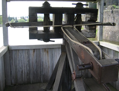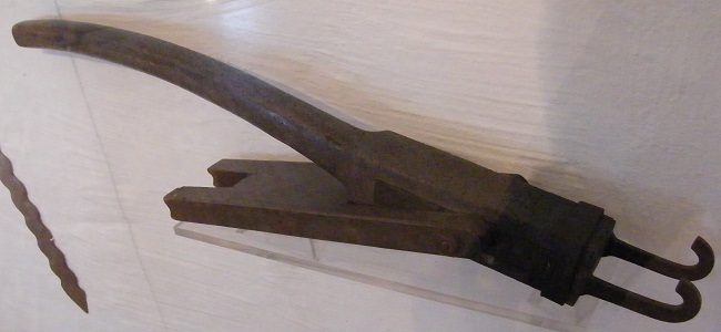 Crossbow spanning hook from Soborg Castle, Denmark, National Museum, Copenhagen, Denmark. An adaption of the spanning belt and claw was to use a pully, so that the cord went from the spanning belt to a pully that was hooked onto the string and then was hooked to the end of the tiller. These types of crossbow were called Turni Balistarii and Arbalests a tour and mentioned in the 13th century. In 1301 Edward I requested crossbows a tour for the defence of Linlithgow.