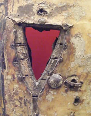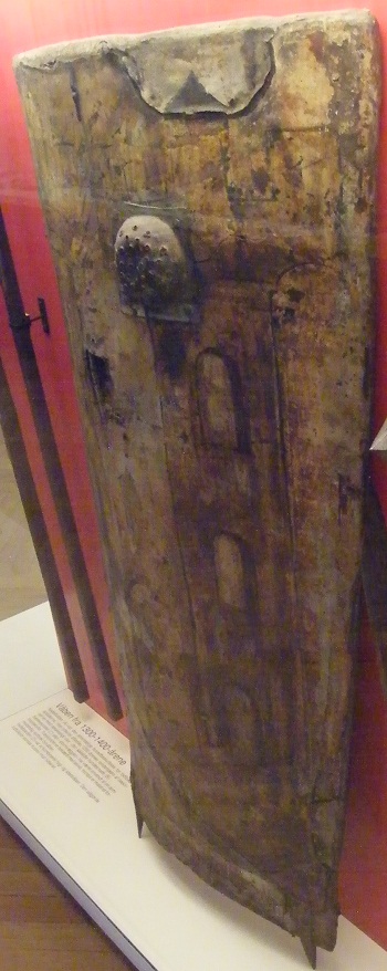 A 'Storm Shield' showing a hole through which bolts could be shot, from National Museum, Copenhagen Denmark.