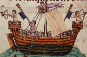Crossbowman on board ship, Luttrell Psalter, 1325-35, British Library, England |