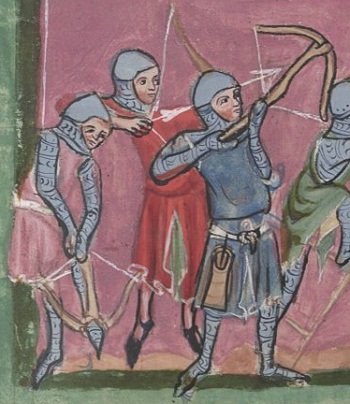 Crossbowmen with spanning hook from Queen Mary Psalter England 1310-20.